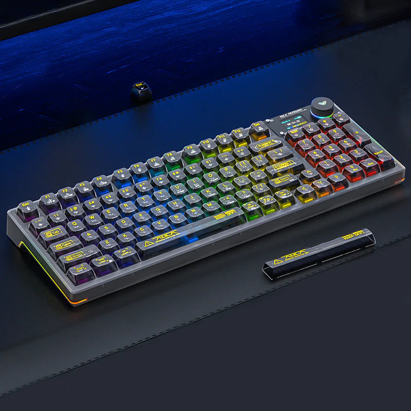 Aula F98 PRO White Transparent, Hotswap RGB Gasket Bluetooth Wireless, Tastatura Mecanica Gaming, Alb